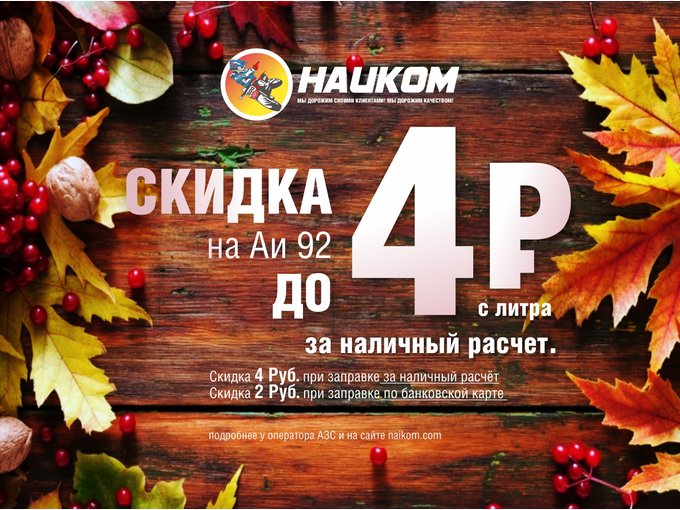 Скидка до 2₽ на Аи 92 и 95 за нал.